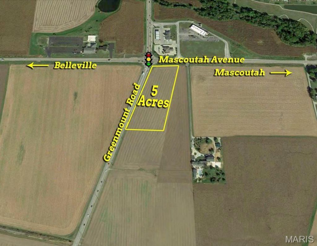 These 5 acres are situated on the Southeast corner of the signalized intersection of Green Mount Road & Mascoutah Avenue in Belleville, IL. There is approximately 836 Feet of Road Frontage with 229' along Mascoutah Avenue then 607' along Green Mount Road. The 5 acres are mostly level and is currently farm ground however the acreage is zoned D-1 within the City of Belleville and offers a multitude of possible uses. The property is located in the zoning jurisdiction of Belleville. The 5 acres were recently split from a larger piece of land therefore, the Parcel ID Number listed has only recently been assigned and as a result, the tax amount listed is a 2018 prorated amount. Location: City, Corner Location