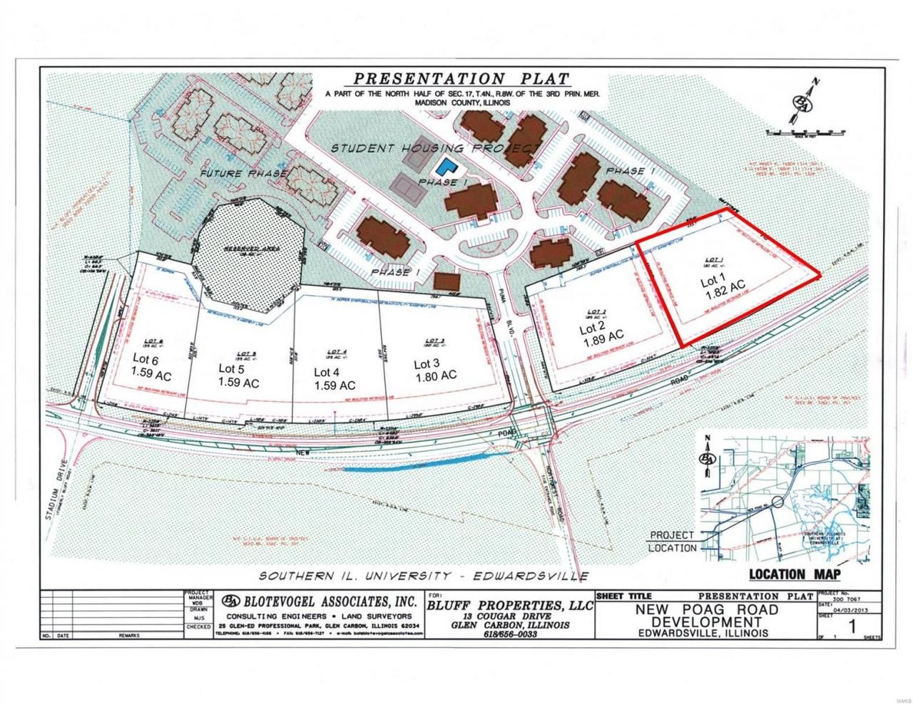 Breathtaking views of the American Bottoms, St. Louis & beyond. Perfect for retail or upscale office. Access to a 4-way lighted intersection. Presentation plat is flexible. Property must be platted prior to closing. Lot number 1 on presentation plat. Adjacent to Enclave West student housing development. Broker owned.