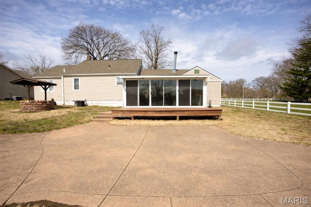 MORE PHOTOS TO COME! Tucked away on nearly 3 private acres, this charming 2-bedroom, 2-bath home offers the perfect blend of peaceful country living and unbeatable convenience-just 5 minutes from all the shopping, dining, and entertainment in Fairview Heights and less than 30 minutes from Scott Air Force Base. The property features a mix of open pasture ideal for horses, a wooded area for added privacy, and a spacious roundabout driveway for easy access and curb appeal. Inside, you'll find a bright and inviting layout highlighted by a large climate-controlled sunroom, perfect for year-round enjoyment. The home also includes an unfinished basement offering additional storage or potential future living space. For equestrian enthusiasts, the large horse barn with multiple stalls makes this property truly stand out. A rare opportunity to enjoy space, seclusion, and location all in one! Buyer or buyer's agent to verify all MLS info.