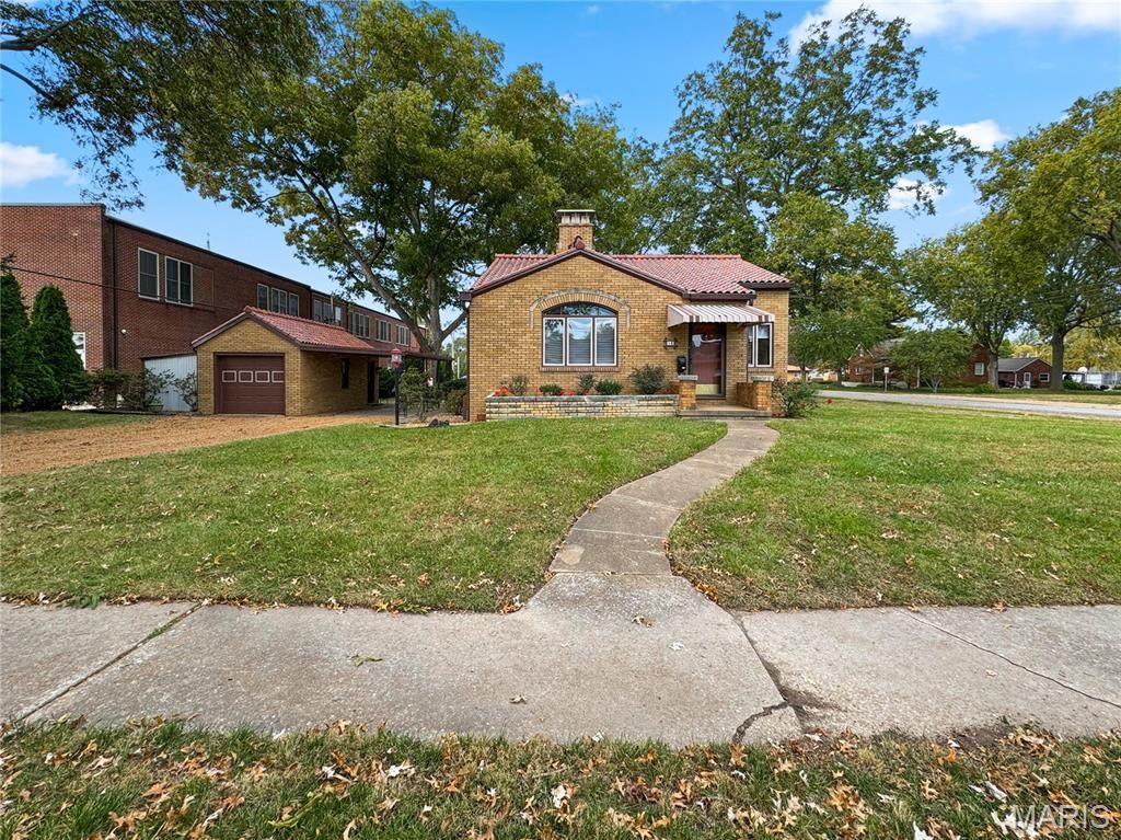 RESIDENTIAL OR COMMERCIAL Zoned B-2, NOW INCLUDING ADDITIONAL PARCEL 12-09.0-217-017. 1930s bungalow on corner lot in the heart of Millstadt across from public school. All brick exterior with new 70+ year rated custom tile roof & 2000+ sq. ft. finished. A great location for living or business (think coffee shop, office space, etc.), inside charming living room w/fireplace & wood floors. 1st bed w/new antique arched doorway can also serve as an office or dining. Eat in kitchen w/ just enough room & vintage tile accents. 2nd bed on main also w/wood floors. Central hallway offers necessary storage. Retro main bath w/tub/shower combo. Back glassed sunporch perfectly frames the back yard. Lower-level w/family room, storage & 2 non-conforming beds, + a full bath w/walk in shower. Beautiful paver patio & carport off one car matching garage creates a quaint courtyard vibe. 7 productive pecan trees. This home oozes charm and is truly one of a kind. Added pest protection insulation in attic. Amazing warranty on roof. Copper gutters with gutter guards. 3/4 of the house has new plaster. 2024 Electric update. 2024 new antique French doors to dining area. This home has been well maintained and it shows! Can accommodate a quick close - move in ready.