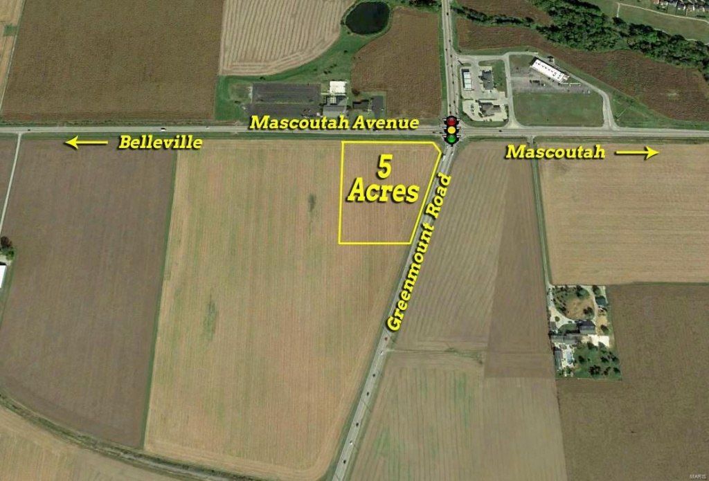 These 5 acres are situated on the Southwest corner of the signalized intersection of Green Mount Road & Mascoutah Avenue in Belleville, IL. There is approximately 776 Feet of Road Frontage with 490' along Mascoutah Avenue then 285' along Green Mount Road. The 5 acres are mostly level and is currently farm ground however the acreage is zoned Light Industrial and offers a multitude of possible uses. The property is located in the zoning jurisdiction of Belleville. The 5 acres were recently split from a larger piece of land therefore, the Parcel ID Number listed has only recently been assigned and as a result, the tax amount listed is a 2018 prorated amount. Location: City, Corner Location