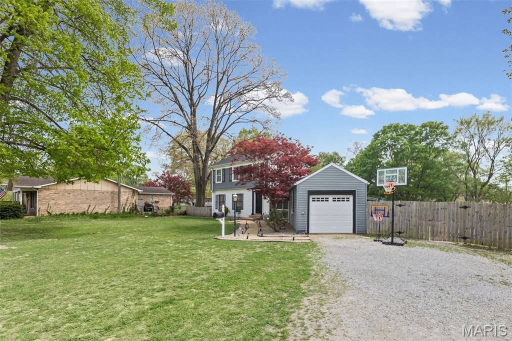 This classic 2-story Colonial is nestled on an expansive nearly 1/2-acre lot! This well-maintained home offers 3 spacious bedrooms and a full bath upstairs, along with a convenient half bath on the main level. The main floor features a welcoming living room with a wood-burning fireplace, formal dining room with built in cabinets, and flowing kitchen -perfect for everyday living and entertaining. Enjoy the unique breezeway connecting the home to the attached 1-car garage, adding both charm and practicality. The large lot provides ample parking, a fenced backyard, and beautifully landscaped outdoor space. Additional highlights include a full unfinished basement offering endless possibilities. Major updates include a new roof (2022), water heater (2024), and radon mitigation system (2018). Home is immaculate, move-in ready, has already passed City Occupancy Inspection and includes a 1-year home warranty for added peace of mind. Conveniently located near parks, schools, and just minutes from Scott Air Force Base!