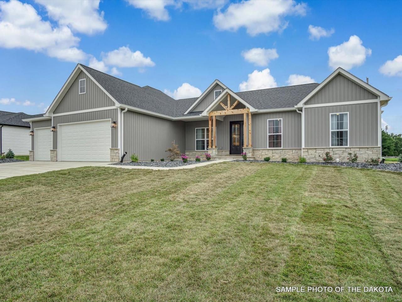 The Dakota floor plan is one of Quantum Homes Inc. Newest Floor Plans. This contemporary ranch is a split bedroom plan that has 3 bedrooms and a great room featuring the living room with gas fireplace, patio doors to patio, kitchen and breakfast room. There is a formal dining room which could be made into a 4th bedroom or den, custom kitchen with stainless steel appliances, pantry, large island, covered front porch. The master bedroom features a master bath with tub and separate shower, his and hers vanities, water closet and walk in closet. This plan can be customized to fit all your needs. Call today for your personal home building consultation. PHOTOS AND VIRTUAL TOURS ARE SAMPLE PHOTOS ONLY. This home is not built but could be built in 5-6 months. Agent Related to seller. Price reflects standard features, daylight wall in basement and 12x12 deck.
