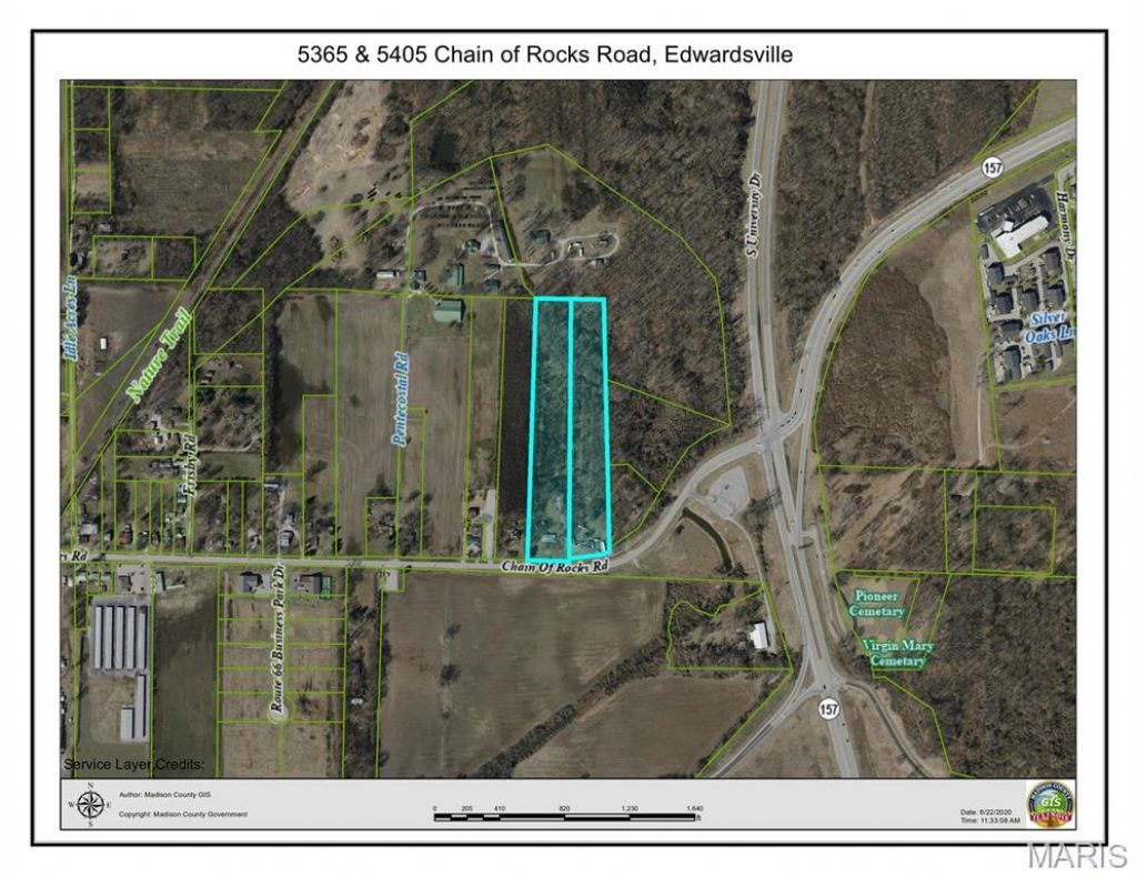 There are two parcels for a total of 11.24 acres. The property is in a trust.5405 Chain of Rocks Rd 2021 Property Tax is $1637.96 (2021)5363 Chain of Rocks Rd 2021 Property Tax is $3781.28 (2021) Total Tax $4741.96Address: 5363 Chain of Rocks Rd parcel ID#14-1-15-29-03-301-035 (5.74 ac) 5405 Chain of Rocks Rd parcel ID#14-1-15-29-03-301-037 (5.50 ac) Location: High Traffic, Rural