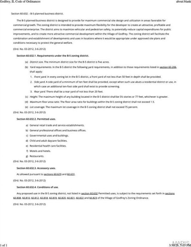 Waiting for a buyer with vision, these 2 commercial parcels provide great potential in a high traffic area with direct proximity to US-67/Hwy. 111 and I-255. Offering high visibility in Godfrey's expanding business district, these combined lots total 2.63 acres and are zoned B5 (planned business district). The current owner has a billboard lease on one lot that earns $4,000/year and also gets additional income by leasing space for camper storage--$2,300-$2,600/year. The sale includes 2 lots: 24-2-01-14-03-303-005 (1.66 acres) and 24-2-01-14-03-303-006 (.97 acre). Before making an offer on any property, buyer should independently verify all MLS data, which is derived from various sources and not warranted as accurate.