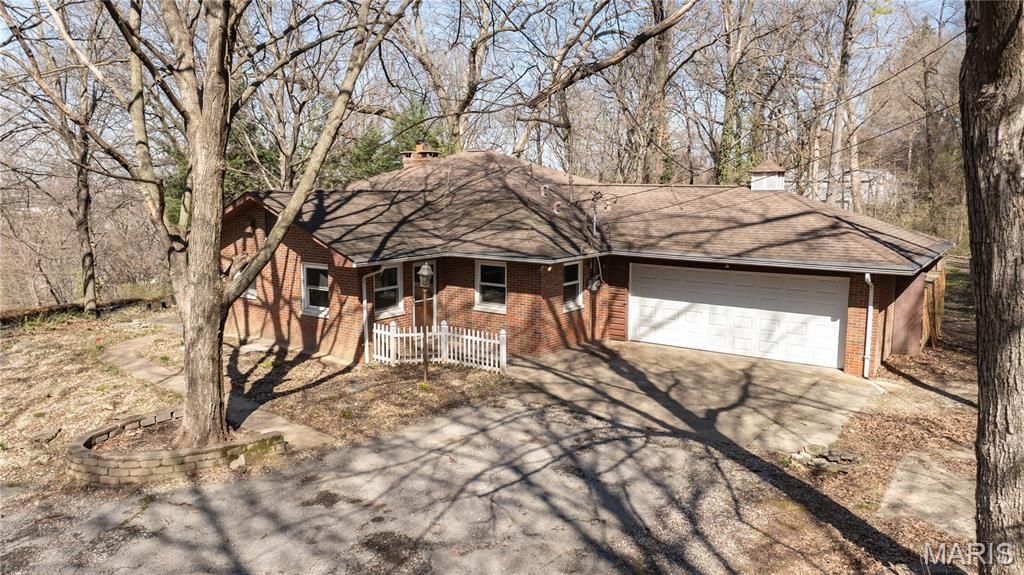 Single family home on 4+ acres with impressive views of the St. Louis skyline.The main level features a spacious living room with gas fireplace and large windows capturing city views, a dining area, and a kitchen with solid surface countertops, and built-in breakfast area. A main floor laundry room provides convenient access to the attached two-car garage with workshop space. The main level also includes two bedrooms with dressing areas (with sinks), a three-quarter bathroom, and an additional half bath.The walk-out lower level offers a partially finished family room with gas fireplace and access to a stone patio area overlooking the property with additional views of the St. Louis skyline. Outdoor features include a hot tub area (not currently functional) and decorative fish pond.This auction has a 6% Buyer's Premium.Open house Monday April 13th from 4pm-6pm